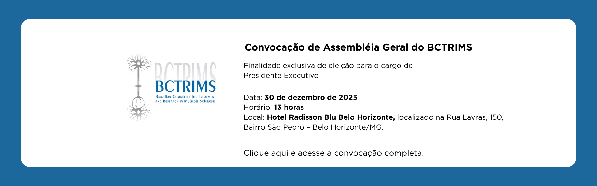 O BCTRIMS é a maior referência brasileira em pesquisas no seu campo de atuação e tem como principal missão promover o estudo e o debate sobre doenças neuroimunológicas, principalmente da esclerose múltipla e neuromielite óptica, informando sobre novos tratamentos, auxiliando no diagnóstico das doenças e promovendo o debate e a capacitação de neurologistas brasileiros.